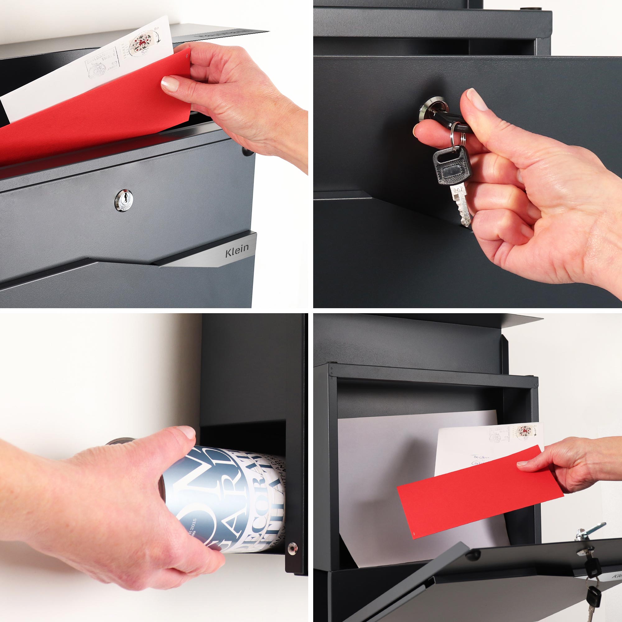 - Nordisches Design – Die anthrazitfarbene Postbox (RAL7016) mit klarer Linie fügt sich harmonisch in jede Hausfassade ein