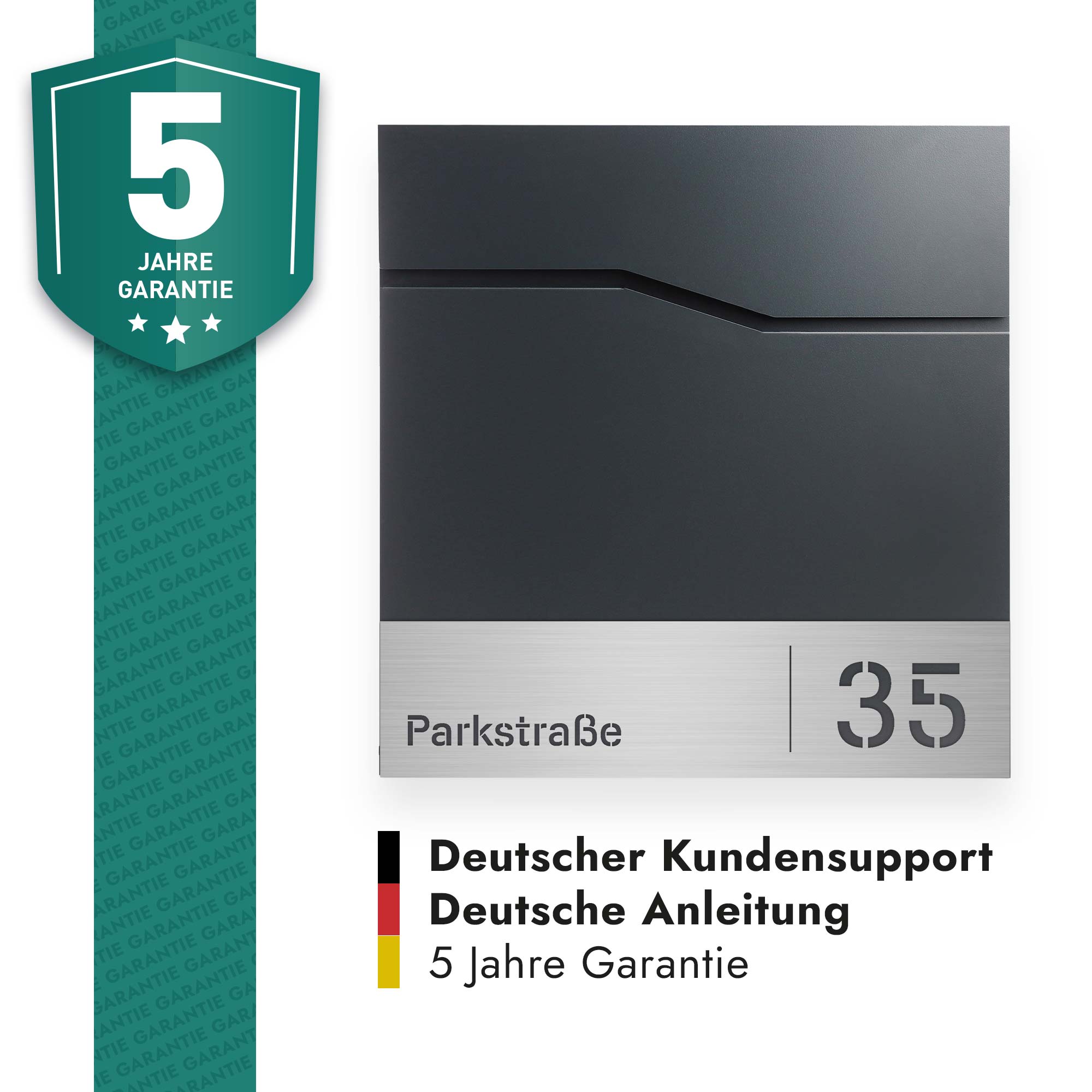 Briefkasten Trelleborg Anthrazit (RAL7016) Zinkstahl mit Zeitungsfach - personalisiert mit Hausnummer und Straßenname als Gravur