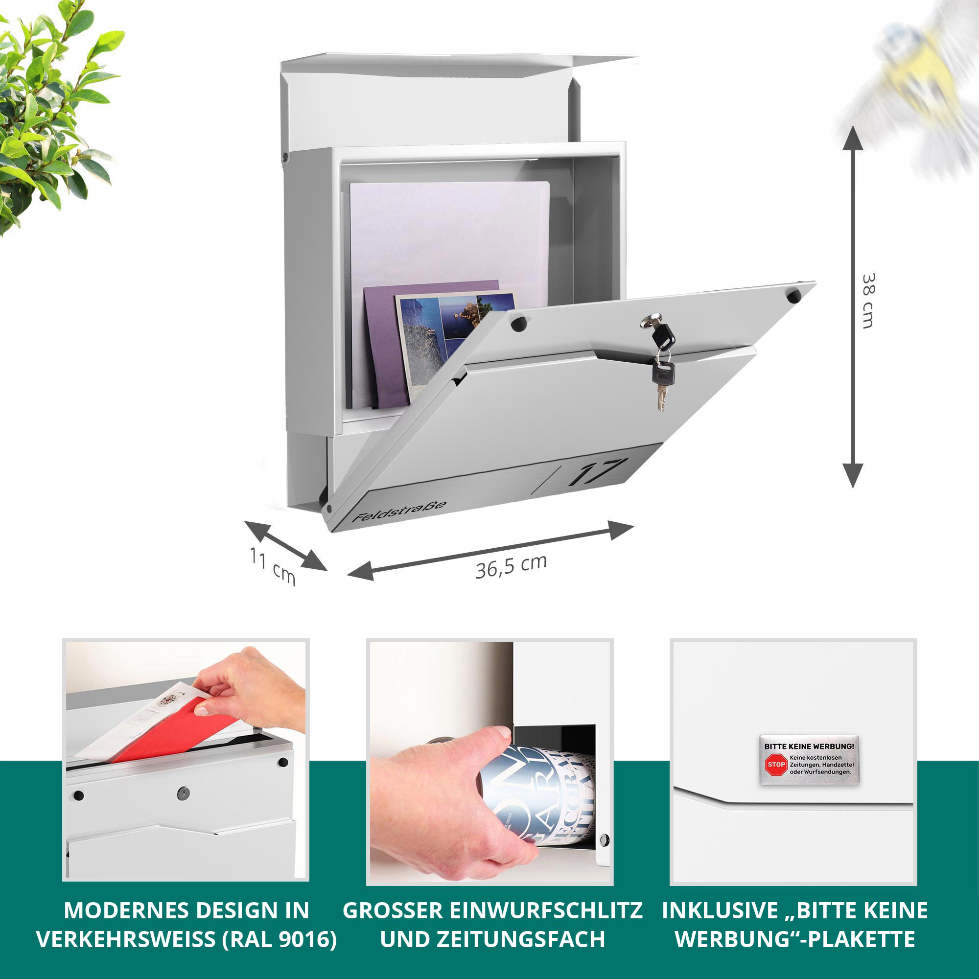 - Wetterfest & robust – Pulverbeschichteter Zinkstahl schützt Ihre Post vor Regen, Schnee und Witterungseinflüssen