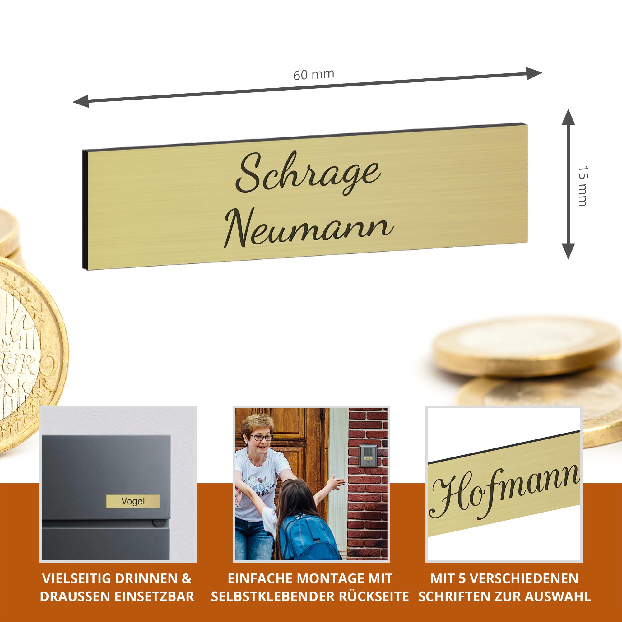 Klingelschild Kongsberg Gold mit Gravur - personalisiertes Türschild 60x15 mm