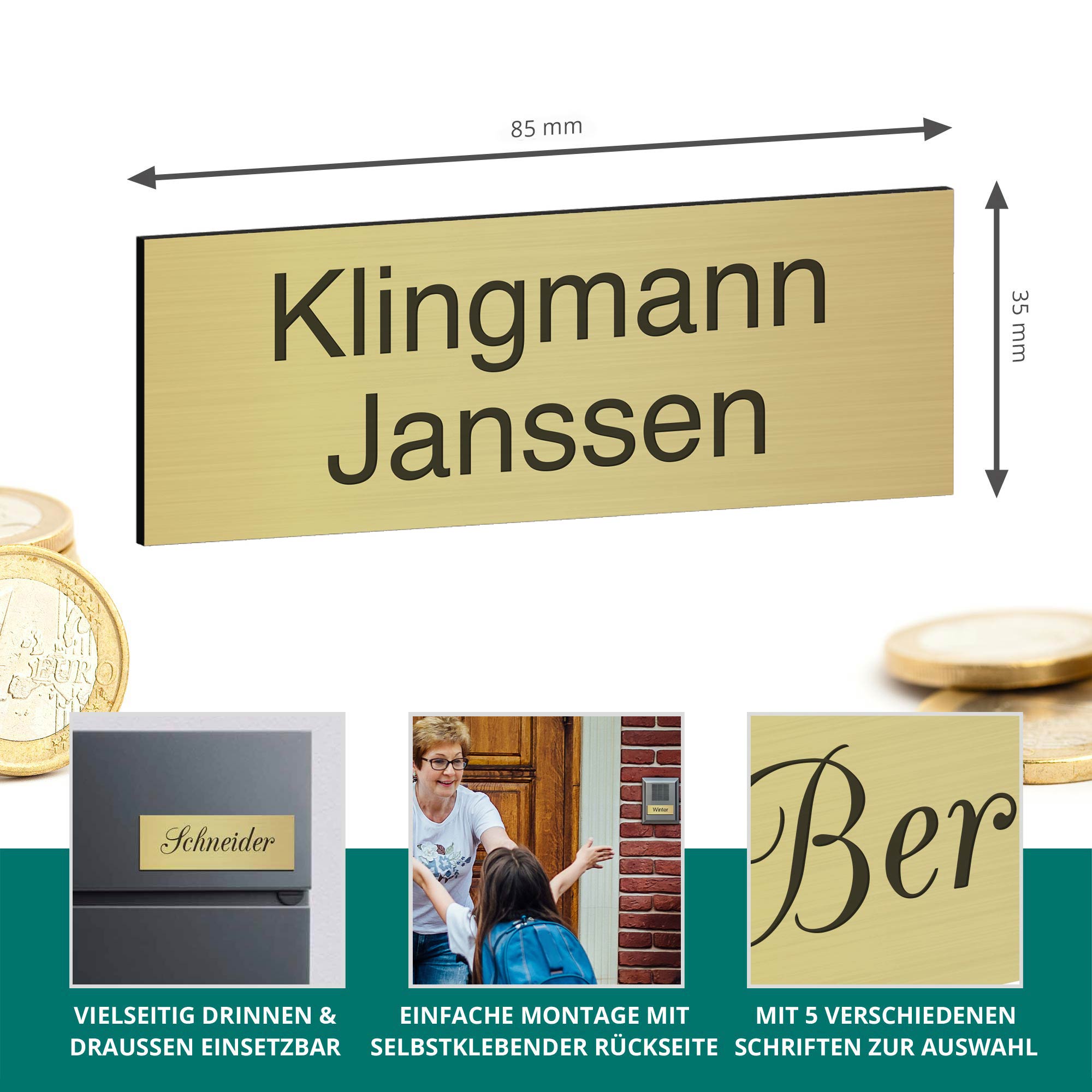 Klingelschild Kongsberg Gold mit Gravur - personalisiertes Türschild 85x30 mm