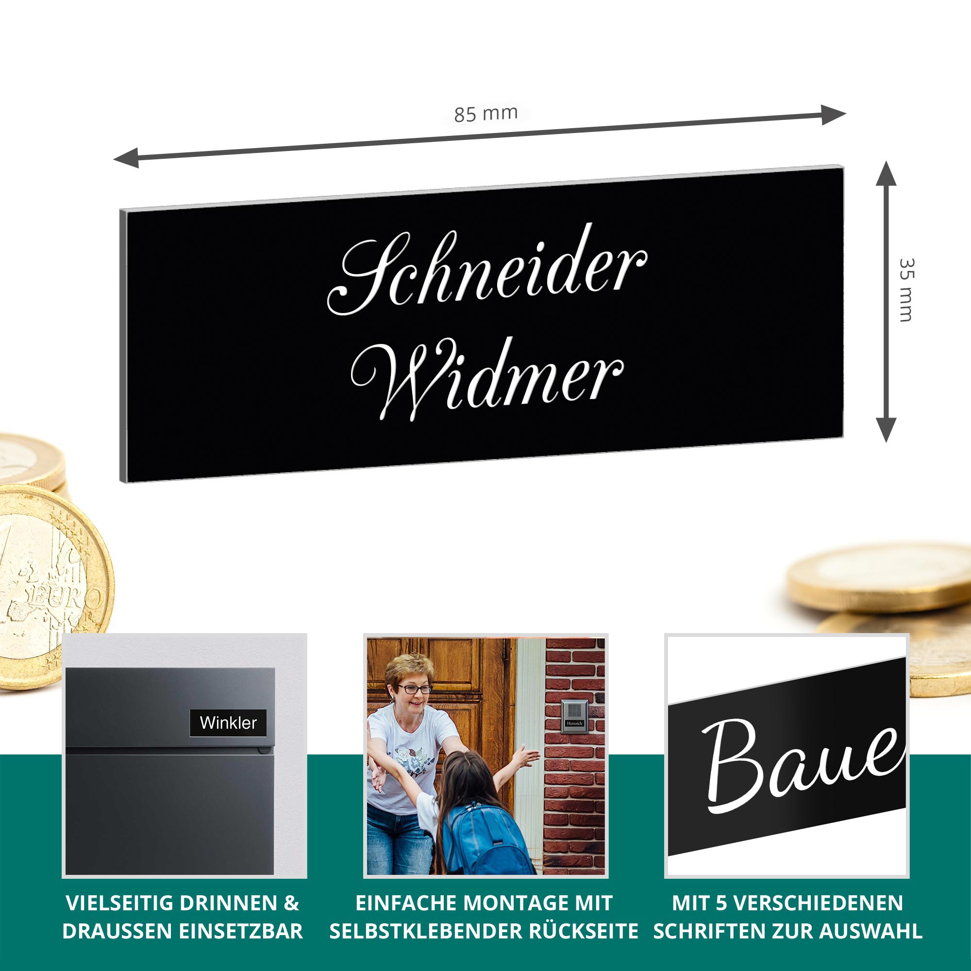 - Personalisiert mit Gravur – Individuell gestaltbar mit Name, Hausnummer oder Wunschtext in 5 Schriftarten