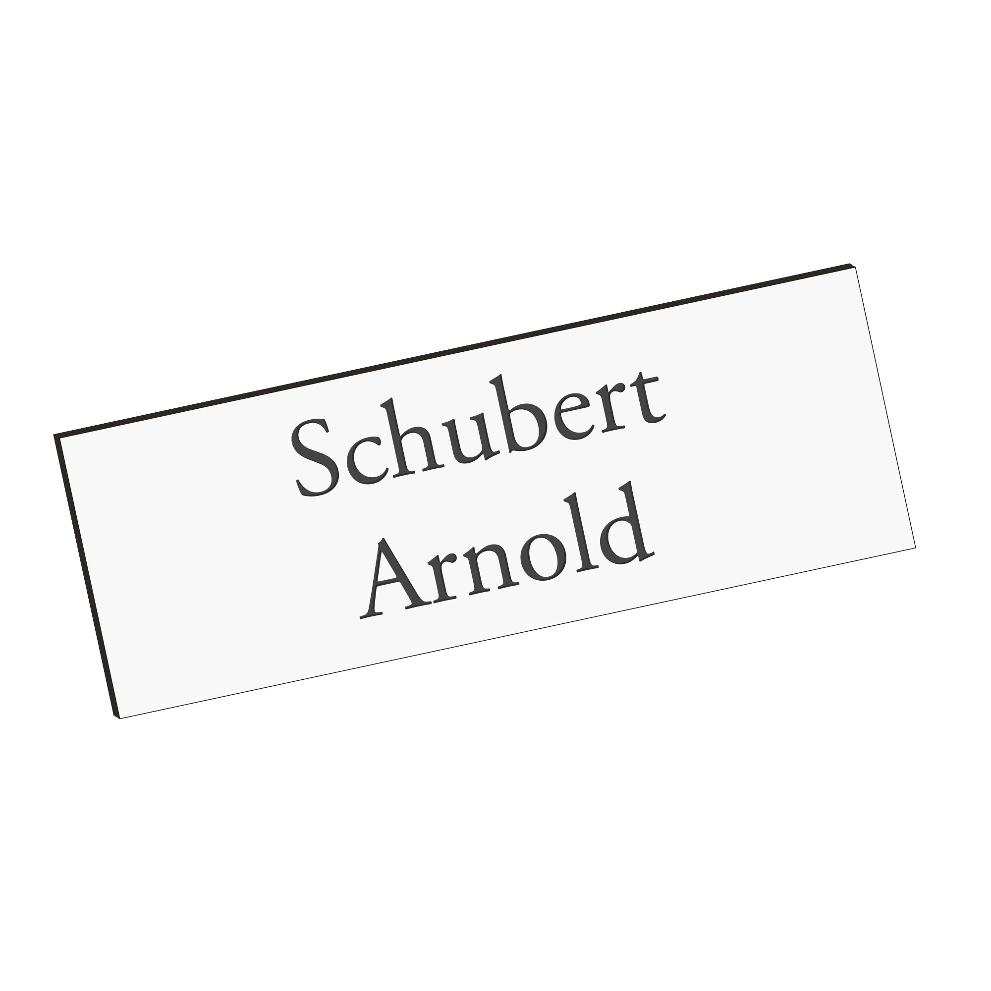 Das Klingelschild Kongsberg in elegantem Weiß mit schwarzer Gravur überzeugt durch modernes Design und hervorragende Lesbarkeit. Mit der großzügigen Fläche von 85 × 30 mm eignet sich das Schild ideal für Eingangsbereich oder Briefkasten und bietet Platz für eine oder zwei Gravurzeilen. Das langlebige 2-Schicht-Acrylmaterial ist wetterfest und UV-beständig – perfekt für den Einsatz im Freien. Die Gravur wird dauerhaft in die obere Schicht eingearbeitet und wirkt besonders kontrastreich auf dem weißen Grund. Durch die selbstklebende Rückseite lässt sich das Namensschild einfach montieren – ganz ohne Bohren oder Schrauben. Wählen Sie zwischen fünf Schriftarten, optional abgerundeten Ecken und einem passenden "Keine Werbung"-Schild für Ihre individuelle Gestaltung. Das personalisierte Schild ist ideal für Haustür, Klingel oder Briefkasten geeignet.