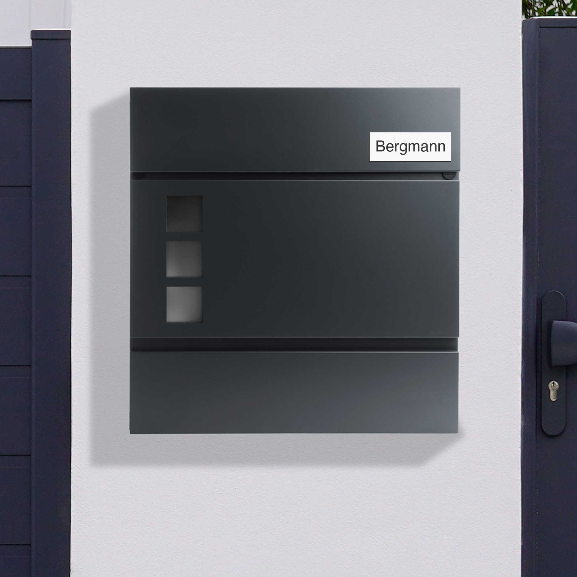 - Moderne Optik – Anthrazitgraues Schild mit kontrastreicher weißer Gravur